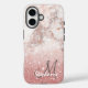 Funda iPhone 16 Monograma Faux Rosa Oro Purpurina Mármol Blanco Om