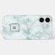 El elegante estuche de teléfono monogramado presenta un fondo de mármol impreso con motivos en tonos pálidos de verde azulón. Añada su monograma inicial en negro, rodeado por un borde geométrico delgado.