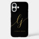 Monograma Black Gold Caligraphy Script Iniciales iPhone 16 Funda