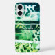 Moderno nunca fuera del estilo de la impresión animal tema del patrón de leopardo en mi interpretación original única. Inspirado en mi mosaico de collage. Personalizable personalizable con el nombre si lo desea. Casi monocromo o gradiente de verde azulado a verde a amarillo con matices sutiles de la jungla. Accesorio de moda femenina de moda Girly para proteger tu celular o hacer un hermoso regalo creativo y reflexivo para ella. Este estuche para iPhone seguramente será notado y admirado. Adecuado como regalo de cumpleaños, Día de la Madre, Día de San Valentín, Navidades o cualquier otra ocasión, aniversario, celebración. El brillante y brillante vibrante sonido le da energía, buen humor, buenas vibraciones.