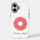 Monograma moderno de nombre corto Donut Funda de iPhone blanco rosado 16. Este atractivo, lindo, divertido y sencillo estuche de teléfono cuenta con un tipo de letra de guión escrito a mano. El diseño incluye una roca con escarcha rosa y hay espacio para personalizar la caja del teléfono con tu nombre. Póngase en contacto conmigo en truullc@gmail.com para obtener productos coincidentes.