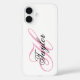 Funda iPhone 16 Monograma negro y rosa de brillo