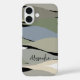 Patrón de hojas simples y neutras, formas orgánicas en tonos pastel mudos de azul verde sabio, gris azul, caqui, beige y un sutil toque de negro para el contraste. Personalizado con Nombre en caligrafía de moda escritura manuscrita, monograma, letras iniciales a su gusto, o incluso puede borrar el texto. Resumen interpretación minimalista de la naturaleza.elementos, como hojas. Un accesorio moderno y de moda para proteger tu celular o un regalo creativo, creativo, reflexivo y útil para ella.