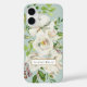 Casos de teléfono monogramados por personalizado personalizados con su nombre u otro texto. Este diseño femenino de bonito presenta un ilustracion floral blanco, verde y dorado con un fondo de menta pastel. Utilice las herramientas de diseño para elegir cualquier color de fondo, cambiar los tipos de letra y los colores del texto o agregar sus propias fotos para crear un diseño funda de tipo especial.