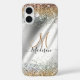 Funda iPhone 16 Monograma purpurina de imitación de oro plateado d