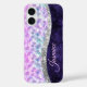 Funda iPhone 16 Monograma purpurina de imitación de plata púrpura