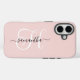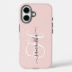 Crea tu propio nombre personalizado de chica y estuche de teléfono monogramado para su nuevo teléfono. Se puede personalizar el fondo de color sólido rosa pálido. También se puede personalizar el elegante monograma de caligrafía en blanco y negro personalizado.