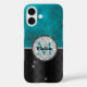 Funda iPhone 16 Monograma turquesa negro Purpurina de moda falso p