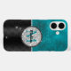 Un elegante y elegante estuche para iPhone de color turquesa Purpurina plateado y chica negra. Este funda presenta un diseño abstracto negro y turquesa con un falso círculo purpurina en plata. La disposición geométrica moderna, combinada con un toque purpurinoso, lo convierte en un accesorio destacado para una moda, de ambiente jovial. Es el regalo perfecto para un dulce cumpleaños de 16 años, boda, ducha de novia, aniversarios, duchas de bebé o fiestas de soltera, día de San Valentín, Navidades o como regalo en general. NOTA: Se trata de gráficos impresos planos, sin purpurinas reales, joyas o piezas elevadas