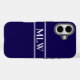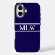 Funda iPhone 16 Monogramado simple azul oscuro y blanco