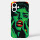 Funda iPhone 16 Mujer verde al estilo del arte pop.