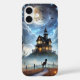 Mysterious phone case featuring a painting of a black cat looking at a spooky house, the moon and bats. Nice for Halloween as well as the rest of the year!
