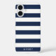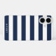 El estuche de teléfono incluye bandas naúticas clásicas azul marino y franjas blancas con un nombre, monograma o mensaje de su elección.