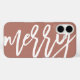 Moderno guión alegre neutro rosa y Navidades blancos caso de teléfono de vacaciones.