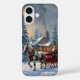 Santa conduciendo un trineo de un caballo para entregar regalos de Navidad en un pequeño pueblo