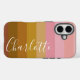 Funda iPhone 16 Nombre de franjas geométricas de boho rosa y terra