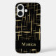 purpurina negro y dorado patrón de textura brillante nombre personalizado Funda iPhone 16