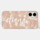 El estuche de teléfono brizna y romántico presenta un patrón bokeh en corazones rosas dulces y polvorientos. Personalice con un nombre o texto de su elección en la escritura cursiva manuscrita.