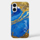 Funda iPhone 16 Nombre personalizado Marble azul y hoja de oro