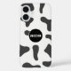 Modern Custom Name Cow Print Black White Iphone 16 funda.