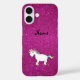 Funda iPhone 16 Nombre personalizado purpurina rosa de unicorn