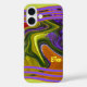 Este funda es compatible con AT&T, Verizon y Sprint con el iPhone 5 y está adornado con un fondo abstracto de naranja verde, púrpura, rojo y quemado con rayas moradas en la parte superior e inferior del color que se conecta del diseño. Personalízalo con su nombre, declaración o lema al hacer clic en Personalizar! para agregar texto con un estilo de letra, tamaño y color que desee. Asegúrese de comprobar las opciones de la versión de vídeo del funda que se muestra en el área Opciones de estilo de la parte superior derecha.