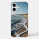 El océano suave ondea sobre una playa de arena bajo un cielo despejado. Un diseño de verano apacible para los estuches de teléfono.