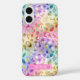 Customize this pastel iridescent leopard print iPhone 16 case with your your name in a trendy modern CAP font in white on pink. It's so chic!