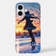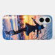 Hermoso estuche de teléfono inspirado en anime que representa a un chica patinando sobre un estanque helado rodeado de árboles nevados con reflejos dorados de atardecer. Perfecto para escenas y festivos diseños de invierno.
