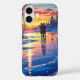 Minimalista estuche de teléfono inspirado en anime que representa un lago helado con patinadores de hielo rodeados de árboles nevados y reflejos dorados de la puesta de sol. Ideal para pintorescos y festivos diseños de invierno.