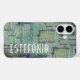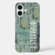 Pastel estético moda fresco monograma inicial nombre estuche para iPhone. Personalizable, personalizable si lo desea, o el guión se puede borrar simplemente.Monocromo monocromático, neutro, natural, con matices sutiles de verde salvia, verde oliva, azul verde azulado, cian, gris y blanco.Grunge perturbado de la imagen artística y elección del tipo de letra coincidente.Tonos suaves en polvo silenciados para un diseño abstracto decorativo. Interpretación de parches de colage textil, un accesorio de moda genial y protección para tu iPhone o como una idea de regalo creativa creativa y reflexiva.
