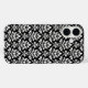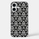 Funda iPhone 16 Patrón blanco de Feuille Damask en negro