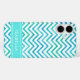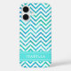 Proteja su teléfono celular con estilo con este moderno Funda Apple iPhone XS de moda. El diseño de portada presenta un patrón de zag de chevron-zag blanco y verde azul, rayas turquesas y tu nombre u otro texto personalizado en una tipografía simple y blanca. Este elegante y moderno estuche de teléfono le hace un regalo elegante.