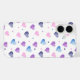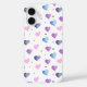 ¿Te gustan los estuches de teléfono lindos? Este estuche de teléfono tiene un patrón de corazones y puntos hechos en color rosa, azul y púrpura.