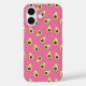 El estuche para iPhone con motivos de aguacate Adorable presenta un patrón de aguacates kawaii sonrientes y guiñados por el ojo en un estilo personalizado, con un fondo rosado vibrante. ¡Un diseño bonito y de moda para los amantes del aguacate o de la kawaii!