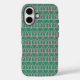 Funda iPhone 16 Patrón de arte de línea floral verde y rosa
