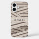 Funda iPhone 16 Patrón de bandas de momias de Halloween y nombre p