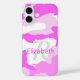 Funda iPhone 16 Patrón de camuflaje blanco rosado monograma