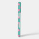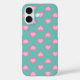 Este estuche iphone presenta un patrón repetido de corazones rosados en un fondo verde claro.