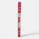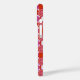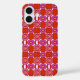 Funda Apple iPhone 16 con un diseño de flor espejo geométrico sin fisuras en los colores de la bandera de orgullo lesbiana; un diseño de orgullo naranja, rosa y blanco, un patrón en un fondo naranja