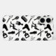 Estuche para iPhone lindo para un estilista de pelo, peluquero, dueña de peluquería o peluquero con un patrón en blanco y negro de las siluetas de las herramientas de su oficio.