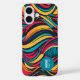 Funda iPhone 16 Patrón de ondas abstractas monogramadas personaliz