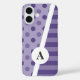 ¡Decoren su teléfono con este punto polka violeta y funda de rayas! Puede personalizar a este funda con su monograma inicial en la parte inferior.