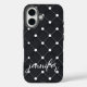 Este funda personalizable para iPhone 16 ofrece un elegante y lujoso aspecto a los que les importa su imagen. Presenta una decoración punteada en blanco y negro. Sólo cambia el texto con el nombre de tu amigo y crea el regalo perfecto para tu amigo.