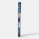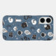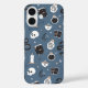 Un espeluznante estuche de teléfono de moda con un patrón de serpientes, cristales místicos, pociones, ortografías, velas, tarros, cráneos, tarjetas de tarot y pociones sobre un fondo azul humeante.
