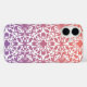 Este hermoso estuche de iPhone con estampado presenta un efecto sombrío degradado en ricos tonos de atardecer de coral y violeta, con una capa de entramado de tejas blanca española.