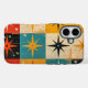 Funda iPhone 16 Patrón moderno de medio siglo Rojo amarillo Verde