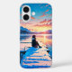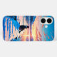 Impresionante estuche de teléfono de anime que muestra a un chica sentado en un muelle nevado junto a un lago helado con un suave cielo pastel. Perfecto para un invierno tranquilo y pintoresco.