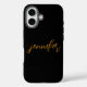 Este funda personalizable para iPhone 16 ofrece un aspecto elegante y lujoso con su sólido diseño negro. Puedes personalizar el negro y el amarillo. Sólo cambia el texto con el nombre de tu amigo y crea el regalo perfecto para tu amigo.