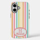 Funda iPhone 16 Personalizado Nombre Monograma Tiras Pastel Alegre